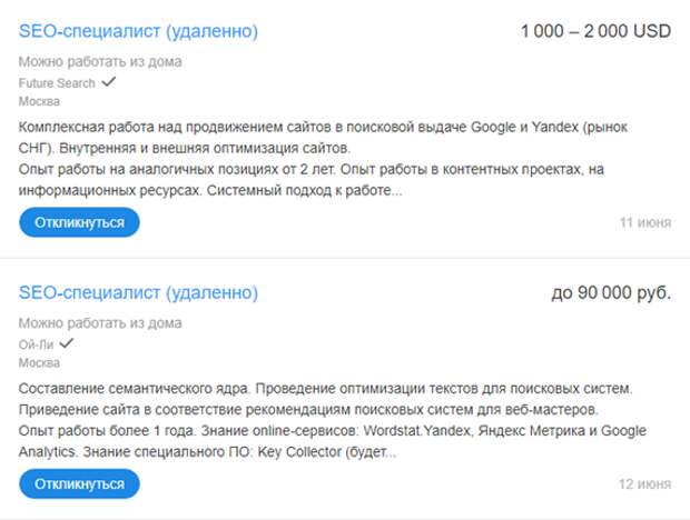 Работодатели предлагают SEO-оптимизаторам зарплату от $1000 до $2000.