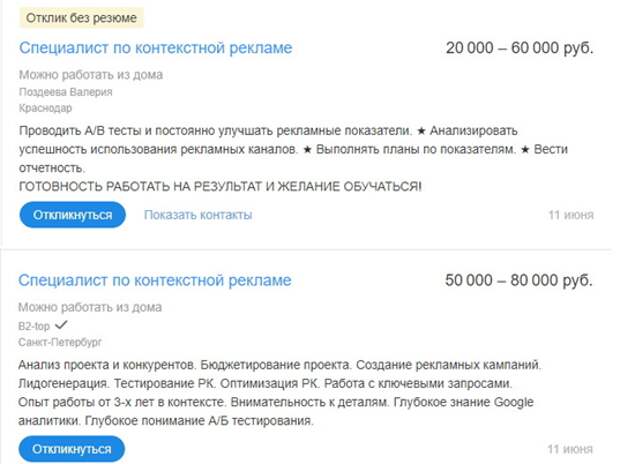 Работодатели на портале HeadHunter предлагают специалистам по контекстной рекламе от $300 до $1100.