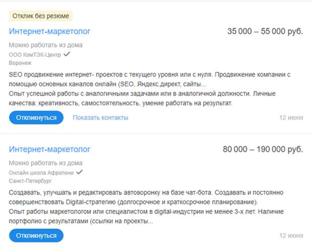 На рынке вакансий заработные платы интернет-маркетологов варьируются от $500 до $2800.