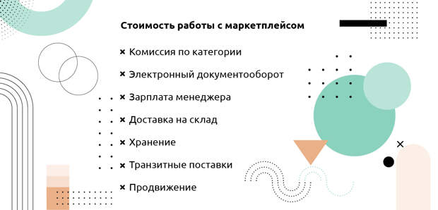 Рассчитать стоимость работы и экономику продаж на маркетплейсах достаточно просто – для этого необходимо понимать размер комиссии, которую берет маркетплейс с продавца, прибавить дополнительные расходы, например, оплату электронного документооборота (потребуется для работы с некоторыми маркетплейсами), зарплату выделенного менеджера, а также затраты на доставку товаров до складов маркетплейсов и оплату за хранение, плату за транзитные поставки и продвижение на маркетплейсе.