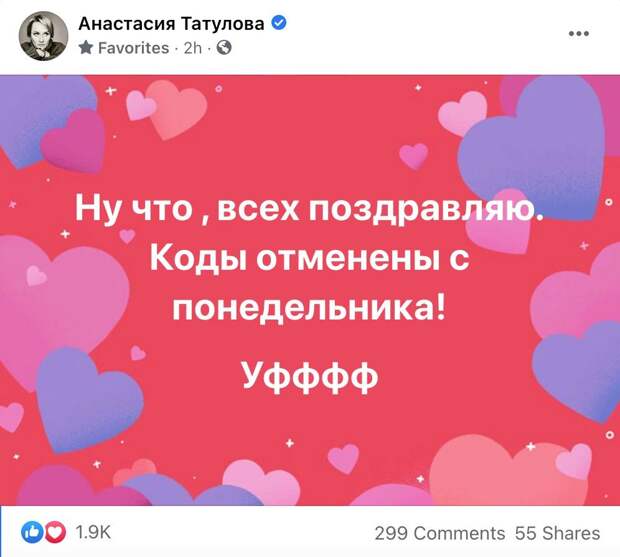 С отменой QR-кодов бизнес поздравила омбудсмен в сфере малого и среднего бизнеса, основательница сети кафе «Андерсон» Анастасия Татулова.