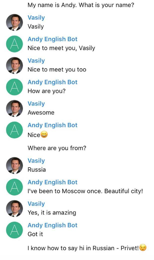 Andy | Learn English — позволяет практиковать акнглийский с дружелюбным собеседником