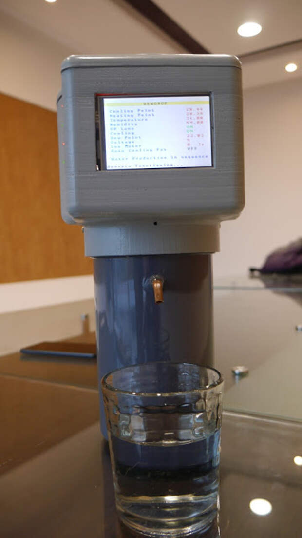 Прибор под названием «Капля росы» весит меньше килограмма, питается от обычных 12-вольтных литий-ионных батарей. Производительность достигает 1,86 литров в час в обычных условиях или 1,2 литра в час в условиях пустыни. Устройство оснащено датчиками температуры и влажности воздуха.